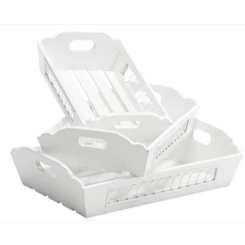 Forside » Møbler » Hvide møbler » Andre hvide møbler Bakker sæt af 3 m/jernflet hvid Varenr: 1309401 Pris ved 1 Stk299,00 DKK Antal Køb Beskrivelse Spørg til varen Mål: 53x36cm / 47x32cm / 40x27cm OBS!!! Prisen er for sættet form Kunder købte også 1.479,00 DKK Sølv spejl 1013 facetslebet 70x185cm 379,00 DKK Ur antik look sort metal 44,00 DKK Lotus Blomst Red