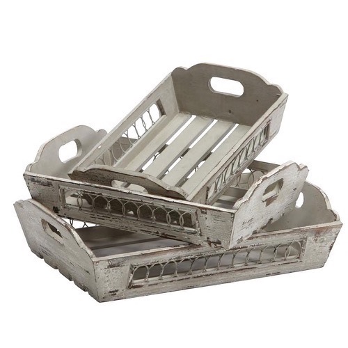 Forside » Møbler » Antik Look møbler » Antik Look hvidgrå Bakker sæt af 3 m/jernflet antik look hvidgrå Varenr: 1309404 449,00 DKK Pris ved 1 Stk299,00 DKK Antal Køb Beskrivelse Spørg til varen OBS! Prisen er for sættet Mål: 53x36cm / 47x32cm / 40x27cm form Kunder købte også 189,00 DKK Bakker sæt af 2 hvide 46x32x8cm