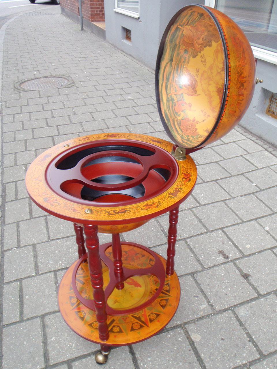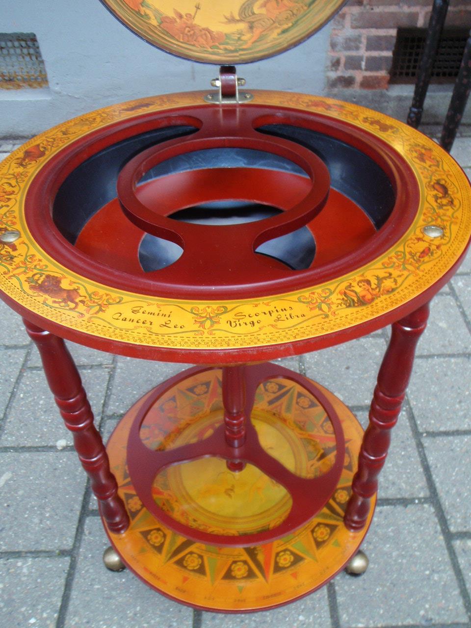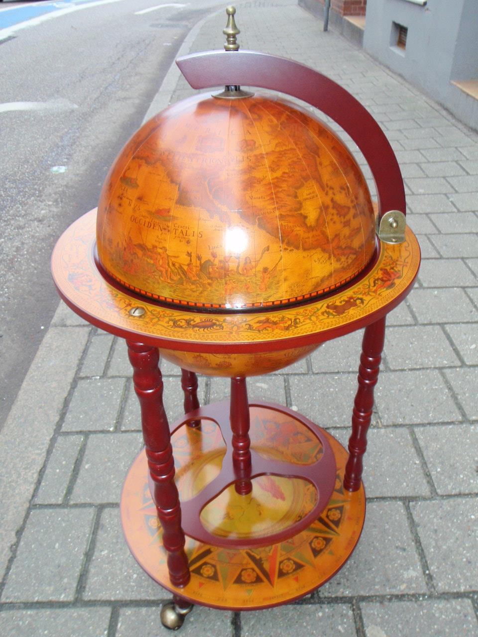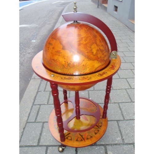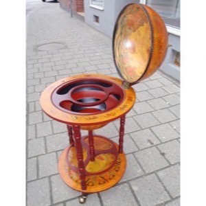 Klassisk Globus Magellan barskab udført i MDF og træ med patineret messing detaljer samt et rigtig flot antik look udtryk. Globus Magellan barskabet har plads til 4 flasker og 10 glas indvendigt plus 6 flasker forneden og tilbyder således et helt unikt opbevaringssted til dine specielle flasker. Barskabet har 3 hjul som gør det nemt at flytte rundt