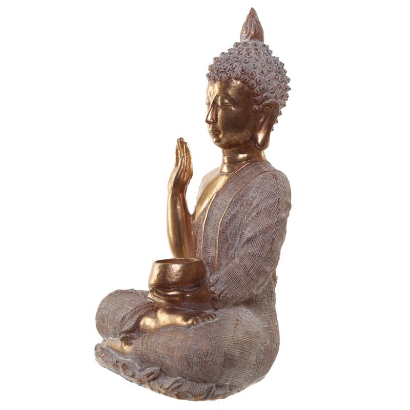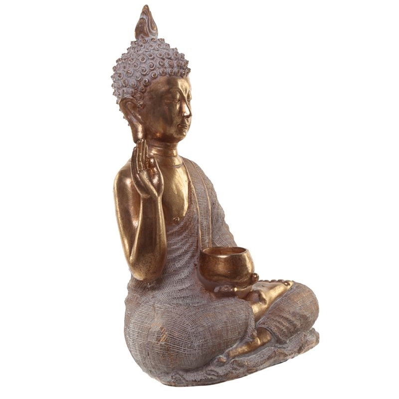 Forside » Figurer » Buddha figurer Buddha 327 siddende guldfarvet h:34cm Varenr: BUD327 Pris ved 1 Stk439,00 DKK Antal Køb Beskrivelse Spørg til varen Buddha figur 327 super flot guldfarvet polyresin, som er et meget stærkt kunstmateriale. Buddha figuren har et virkeligt flot antik look og guldet er blandt de pæneste. Buddha figuren har en fin holder til fyrfadslys Mål: 34x23x15cm Se flere Buddha figurer her form