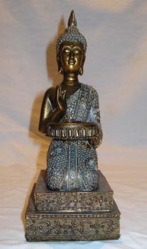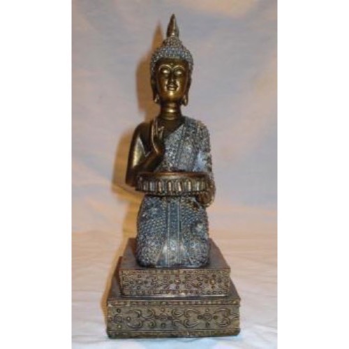 Forside » Figurer » Buddha figurer Buddha knælende patina guld h24cm Varenr: BUD019700 349,00 DKK Pris ved 1 Stk219,00 DKK Antal Køb Beskrivelse Spørg til varen OBS!!! KUN 1 EKSEMPLAR TILBAGE!!! Buddha knælende figur 019700 er støbt i patineret guldfarvet polyresin, som er et meget stærkt kunstmateriale og som derefter er rigtig flot dekoreret. Buddha figuren holder en lille skål imellem hænderne som kan bruges til et fyrfadslys Mål: højde 24cm Se flere Buddha figurer her form