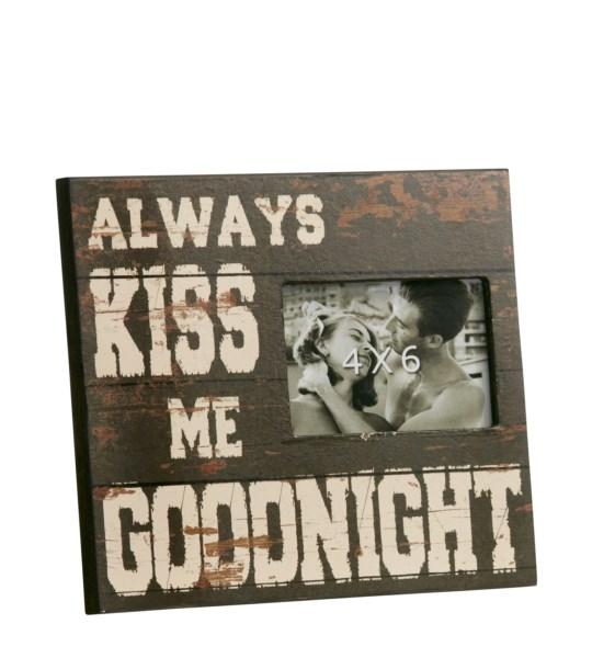 Forside » Lidt af hvert... » Rammer » Rammer med Citater Fotoramme Always Kiss Me Goodnight 28x23cm Varenr: 1501601 129,00 DKK Pris ved 1 Stk109,00 DKK Antal Køb Beskrivelse Spørg til varen Fotoramme i træ med plads til 10x15cm foto og teksten: Always Kiss Me Goodnight Mål: 28x23cm Kan både ophænges og stå frit form