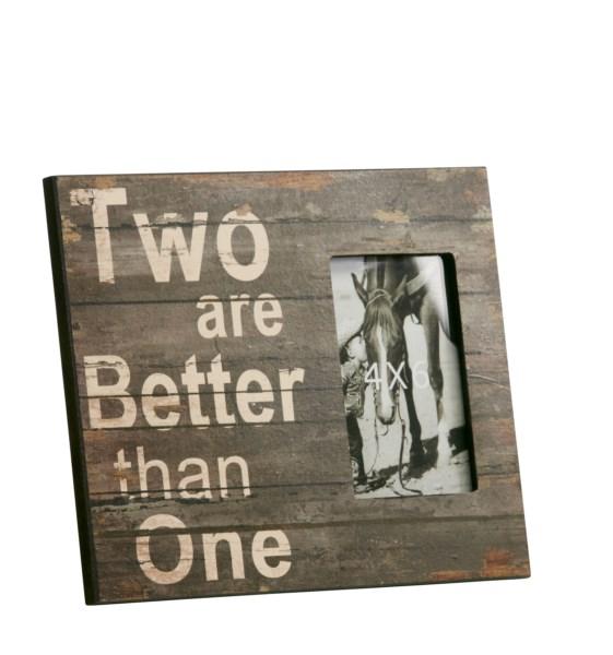 Forside » Lidt af hvert... » Rammer » Rammer med Citater Fotoramme Two Are Better Than One 28x23cm Varenr: 1501101 129,00 DKK Pris ved 1 Stk109,00 DKK Antal Køb Beskrivelse Spørg til varen Fotoramme i træ med plads til 10x15cm foto og teksten: Two Are Better Than One Mål: 28x23cm Kan både ophænges og stå frit form Kunder købte også 249,00 DKK Sølv spejl 525 facetslebet 40x50cm