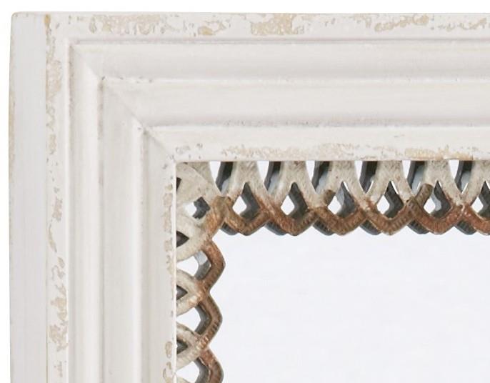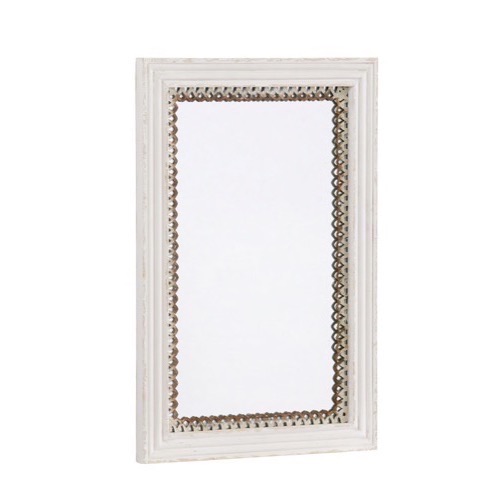 Forside » Spejle » Hvide Spejle Hvidt spejl 1372 mønstret 41x61cm Varenr: 1372901W4161 Pris ved 1 Stk439,00 DKK Antal Køb Beskrivelse Spørg til varen Virkeligt flot antikbehandlet træ med en meget slidt overflade og en fin cremefarvet kulør. Inderst i rammen er et mønstret metal bånd i en rustent udtryk Udvendigt mål: 41x61cm Rammebredde: 6,5cm inkl 2cm indvendig metal kant form