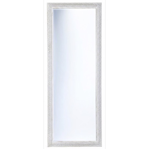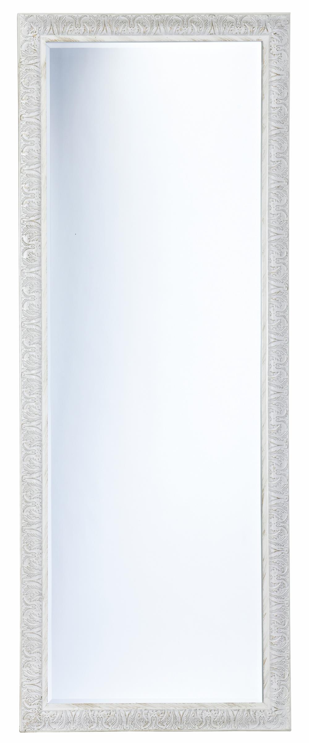 Facetslebet hvidt spejl med lidt guld i mønstret patineret træramme