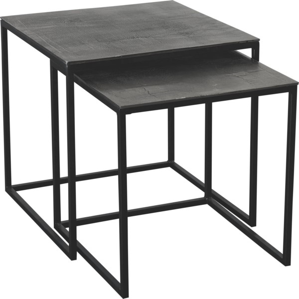 Forside » Møbler » Metal møbler » Borde & Stole Indskudsborde 2 kvadrater oxideret rå aluminium Varenr: CB24198802 2.679,00 DKK Pris ved 1 Stk2.179,00 DKK Antal Køb Beskrivelse Spørg til varen To kvadratiske indskudsborde udført i oxideret rå aluminum. Flot patineret overflade Mål: 50x50x50cm / 45x45x45cm form