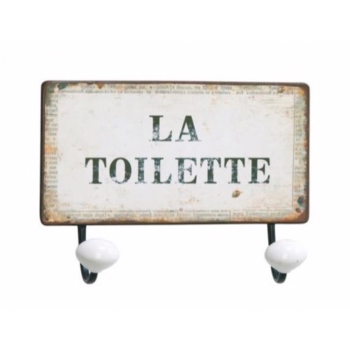Forside » Møbler » Knagerækker » Knagerækker i metal Knagerække 2 kroge La Toilette 23x17cm Varenr: 2012901 129,00 DKK Pris ved 1 Stk89,00 DKK Antal Køb Beskrivelse Spørg til varen Knagerække med 2 kroge i antik patineret metal og med retro slidt metal skilt med teksten: "La Toilette" Mål: 23x17cm form Kunder købte også 59,00 DKK Metal skilt 20x48cm This Family...