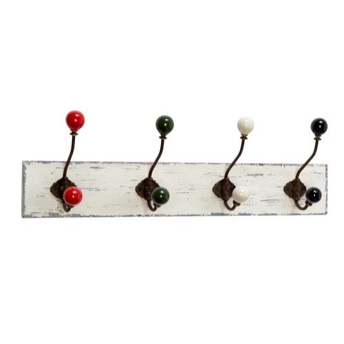 Forside » Møbler » Knagerækker » Knagerækker i træ Knagerække 4 kroge i forskellige farver 61x21 cm Varenr: 1370501 Pris ved 1 Stk279,00 DKK Antal Køb Beskrivelse Spørg til varen Utraditionel knagerække i antik look slidt malet træ med 4 metal knager i forskellige farver Mål: 61x21cm form
