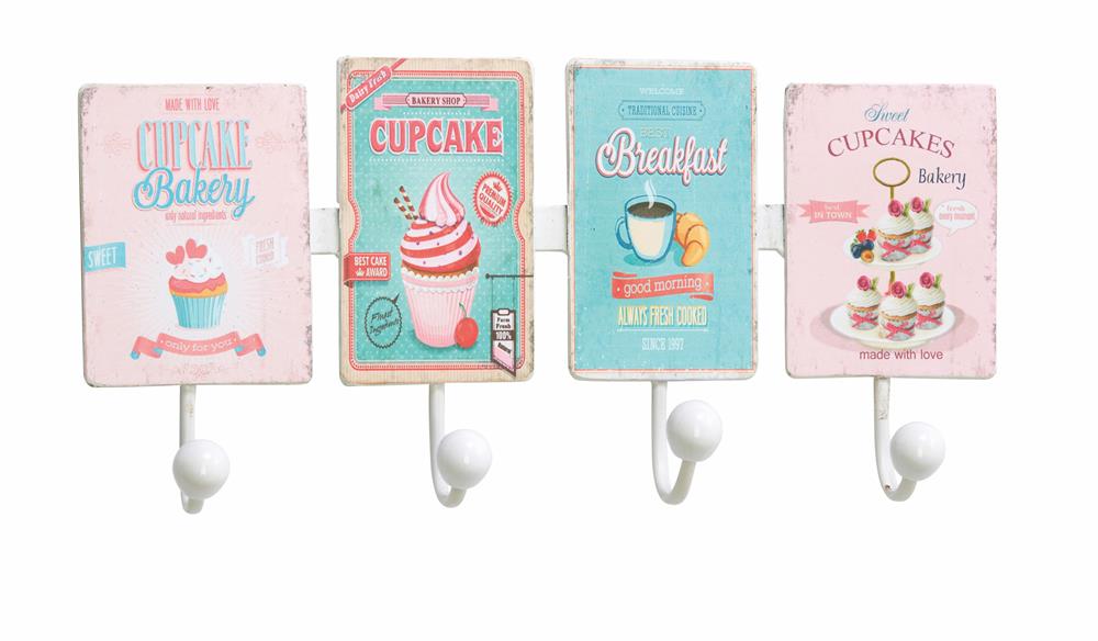 Forside » Møbler » Knagerækker » Knagerækker i metal Knagerække 4 kroge Cupcake Bakery 38x20cm Varenr: 2012801 189,00 DKK Pris ved 1 Stk149,00 DKK Antal Køb Beskrivelse Spørg til varen OBS!!! KUN 1 EKSEMPLAR TILBAGE!!! Knagerække med 4 kroge i hvidmalet metal og 4 metal retro skilte med billeder af Cupcakes og Cupcake Bakery Mål: 38x20cm form