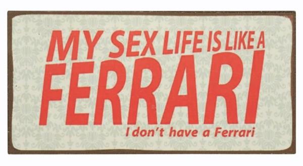 Forside » Lidt af hvert... » Magneter Magnet 10x5cm My Sex Life Is Like A Ferrari Varenr: 2051001 Pris ved 1 Stk18,00 DKK Antal Køb Beskrivelse Spørg til varen Magnet 10x5cm: My Sex Life Is Like A Ferrari - I Don't Have A Ferrari Mål: 10x5cm Se flere Magneter her form Kunder købte også 18,00 DKK Magnet 5x7cm I Need Six Months Vacation... 18,00 DKK Magnet 7x5cm If You Want Breakfast In Bed 18,00 DKK Magnet 10x5cm Stop And Smile 18,00 DKK Magnet 5x7cm Always Give A Little More