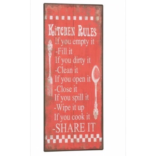 Forside » Skilte » Medium metalskilte Metal skilt 20x48cm Kitchen Rules Varenr: 2022401 Pris ved 1 Stk89,00 DKK Antal Køb Beskrivelse Spørg til varen Rødt metal skilt i den slidte stil med antydningen af rust og overskiften: Kitchen Rules: "If You Empty It - Fill It If You Dirty It - Clean It If You Open It - Close It If You Spill It - Wipe It Up If You Cook It - Share It" Mål: 20x48cm Se flere Små Metal skilte her form Kunder købte også 119,00 DKK Træ skilt Please Wash Your Hands 30x40cm 89,00 DKK Træ skilt How Long A Minute Is...25x16x5cm 139,00 DKK Knagerække Life Is Like A Bicycle...10x60cm 89,00 DKK Metal skilt 26x35cm Self Service Open 24 Hours