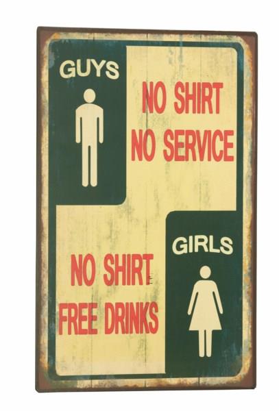 Forside » Skilte » Medium metalskilte Metal skilt 25x40cm Guys: No Shirt No Service... Varenr: 2023101 Pris ved 1 Stk129,00 DKK Antal Køb Beskrivelse Spørg til varen Metal skilt med den morsomme tekst: Guys: No Shirt No Service - Girls: No Shirt Free Drinks Mål: 25x40cm Se flere metal skilte i samme størrelse her form Kunder købte også 69,00 DKK Metal skilt Take Coffee With You 30x20cm 89,00 DKK Metal skilt 26x35cm Night Owl Blend Coffee 89,00 DKK Metal skilt 26x35cm In Wine There Is Wisdom... 18,00 DKK Magnet 5x10cm Do What Makes You Happy