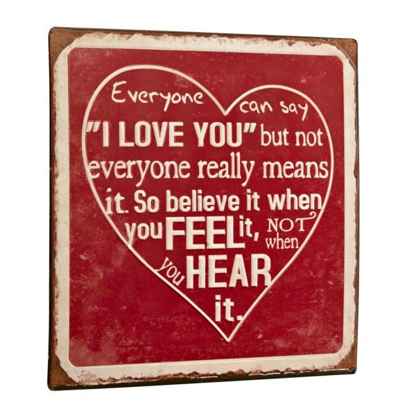 Forside » Skilte » Medium metalskilte Metal skilt Everyone Can Say: I Love You...27x27cm Varenr: 1401201 Pris ved 1 Stk89,00 DKK Antal Køb Beskrivelse Spørg til varen Rødt metal skilt med hjerte og teksten: "Everyone Can Say: I Love You But Not Everyone Means It - So Believe It When You Feel It - Not When You Hear It" Mål: 27x27cm Se flere Metal skilte i medium størrelse her form Kunder købte også 39,00 DKK Metal skilt I Can't Remember If I'm...31x13cm 89,00 DKK Metal skilt 99% Of All Computer Problems... 26x35cm 49,00 DKK Metal skilt Kitchen Closed 31x13cm 18,00 DKK Magnet 10x5cm My Dog Is Cooler