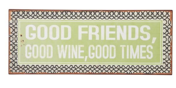 Forside » Skilte » Større metalskilte Metal skilt Good Friends, Good Wine...76x31cm Varenr: 1392901 Pris ved 1 Stk149,00 DKK Antal Køb Beskrivelse Spørg til varen Metal skilt med teksten: "Good Friends, Good Wine, Good Times" Mål: 76x31cm form Kunder købte også 59,00 DKK Metal skilt 25 c Hot Baths 25 c 31x13cm 18,00 DKK Magnet 5x10cm Keep Calm and Carry On 18,00 DKK Magnet 5x10cm Two Is Better Than One 18,00 DKK Magnet 5x7cm You Make Me Happy