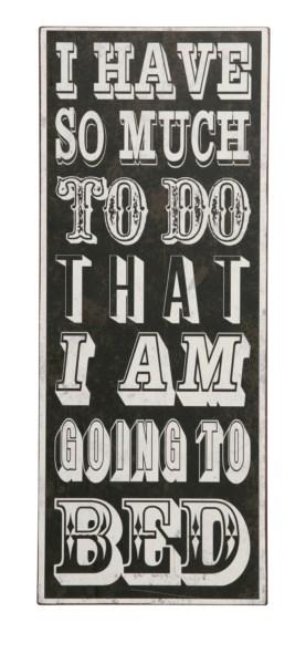 Forside » Skilte » Større metalskilte Metal skilt I Have So Much To Do...31x76cm Varenr: 1392501 Pris ved 1 Stk149,00 DKK Antal Køb Beskrivelse Spørg til varen Sort hvidt metal skilt med teksten: "I Have So Much To Do That I Am Going To Bed" Mål: 31x76cm form Kunder købte også 119,00 DKK Træ skilt Please Wash Your Hands 30x40cm
