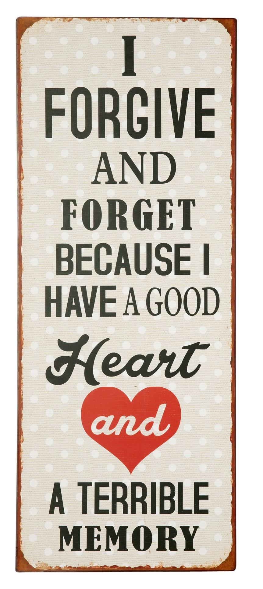 Forside » Skilte » Større metalskilte Metal skilt I Forgive And Forget... 31x76cm Varenr: 1403701 199,00 DKK Pris ved 1 Stk149,00 DKK Antal Køb Beskrivelse Spørg til varen Retro metal skilt med teksten: "I Forgive And Forget Because I Have A Good Heart And A Terrible Memory" Mål: 31x76cm Se flere Store metal skilte her form Kunder købte også 89,00 DKK Metal skilt 26x35cm In Wine There Is Wisdom...