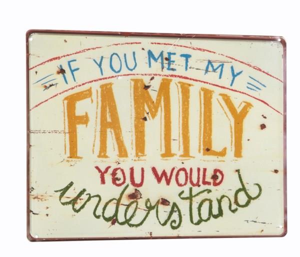 Forside » Skilte » Større metalskilte Metal skilt If You Met My Family... 40x30cm Varenr: 1544701 Pris ved 1 Stk129,00 DKK Antal Køb Beskrivelse Spørg til varen Retro metal skilt med teksten: "If You Met My Family You Would Understand" fremhævet i overfladen Mål: 40x30cm form