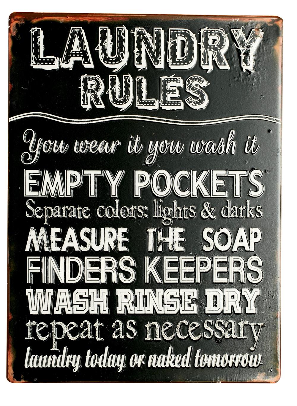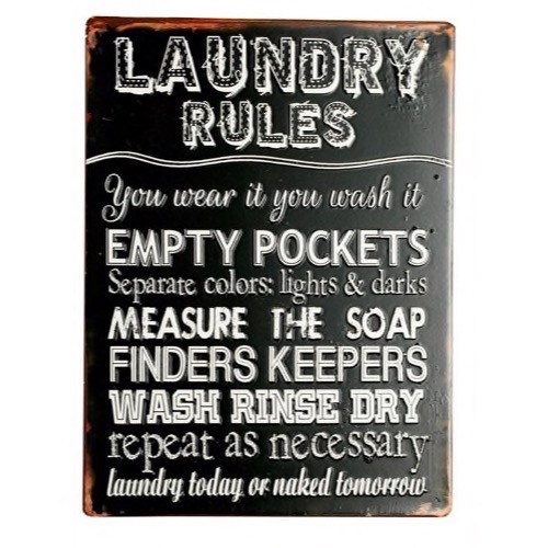 Forside » Skilte » Medium metalskilte Metal skilt Laundry Rules 26x35cm Varenr: 1402001 Pris ved 1 Stk99,00 DKK Antal Køb Beskrivelse Spørg til varen Sort hvidt retro metal skilt med overskriften "Laundry Rules" og efterfølgende 8 gode råd: "You Wear It You Wash - Empty Pockets - Separate Colors: lights & darks - Measure The Soap - Finders Keepers - Wash Rinse Dry - Repeat As Necessary - Laundry Today Or Naked Tomorrow" Mål: 26x35cm Bogstaverne er fremhævet i skiltet Se flere Medium Metal skilte her form Kunder købte også 129,00 DKK Træ skilt Bathroom Rules 40x40cm 18,00 DKK Magnet 5x7cm In Wine There Is Wisdom... 18,00 DKK Magnet 7x5cm Take Me Shopping And I´m Yours 48,00 DKK Elefant i polyresin guld/grå h:5cm