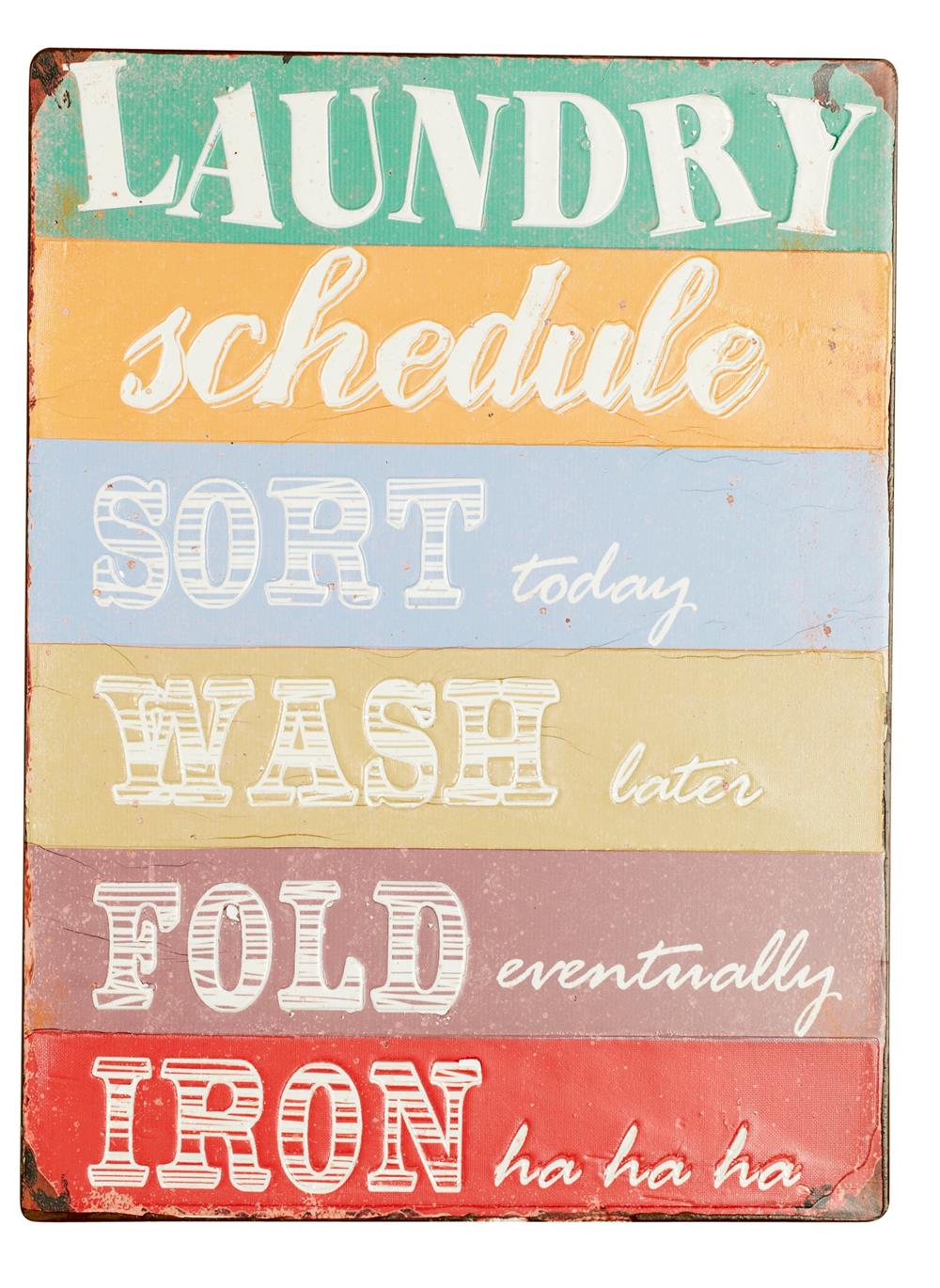 Forside » Skilte » Medium metalskilte Metal skilt Laundry Schedule 26x35cm Varenr: 1402901 Pris ved 1 Stk99,00 DKK Antal Køb Beskrivelse Spørg til varen Farverigt retro metal skilt med teksten: "Laundry Schedule og nedenunder Sort today, Wash later, Fold eventually, Iron ha ha ha" - bogstaverne er fremhævet i metallet Mål: 26x35cm form Kunder købte også 89,00 DKK Metal skilt Laundry Today Or...26x35cm