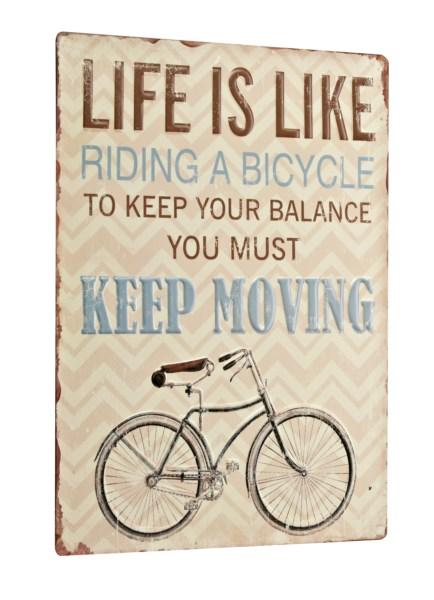Forside » Skilte » Medium metalskilte Metal skilt Life Is Like Riding A Bicycle 26x35cm Varenr: 1399701 Pris ved 1 Stk99,00 DKK Antal Køb Beskrivelse Spørg til varen Metal skilt med fremhævede bogstaver og teksten: "Life Is Like Riding A Bicycle - To Help Your Balance - You Must Keep Moving" Mål: 26x35cm form