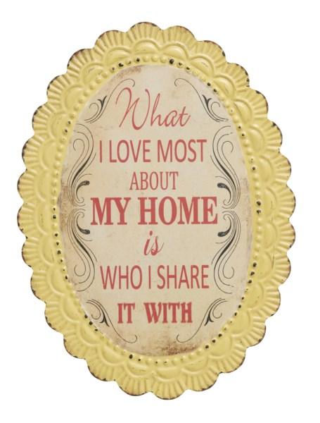 Forside » Skilte » Større metalskilte Metal skilt What I Love Most About...34x46cm Varenr: 1394101 Pris ved 1 Stk119,00 DKK Antal Køb Beskrivelse Spørg til varen Mønster er præget i metallet Ovalt metal skilt med teksten: "What I Love Most About My Home Is Who I Share It With" Mål: 34x46cm form Kunder købte også 129,00 DKK Ur Morgen pink/rust metal 12x15cm 519,00 DKK Fotoramme træ antik look hvid 60x43x5cm 59,00 DKK Metal skilt 20x48cm This Family...