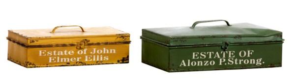 Forside » Lidt af hvert... » Dåser, Kister & Skrin Metal skrin grønt Alonzo P. Strong 41x24cm Varenr: 1360801A Pris ved 1 Stk289,00 DKK Antal Køb Beskrivelse Spørg til varen Metal skrin med slidt grøn bemaling og teksten Estate of Alonzo P. Strong i hvide bogstaver. Skrinet har en lille lukke anordning og et rigtigt fint vintage look Mål: 41x24x14cm form