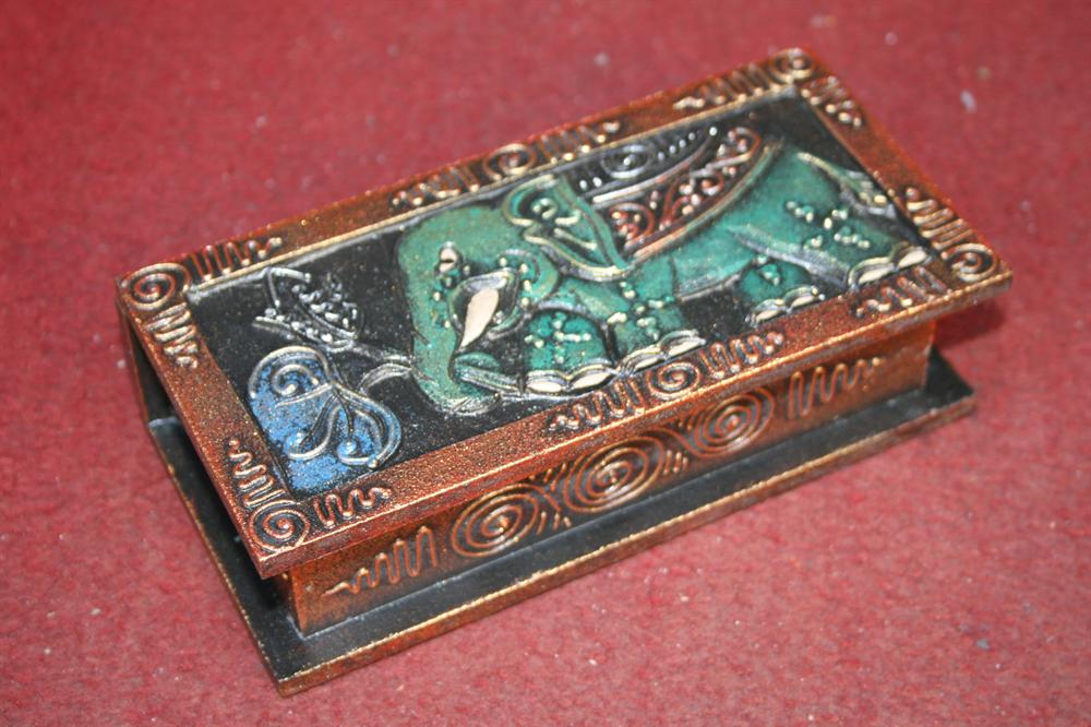 Forside » Lidt af hvert... » Dåser, Kister & Skrin Skrin Elefant grøn/guld 18x9x5cm Varenr: INDW016 Pris ved 1 Stk99,00 DKK Antal Køb Beskrivelse Spørg til varen form