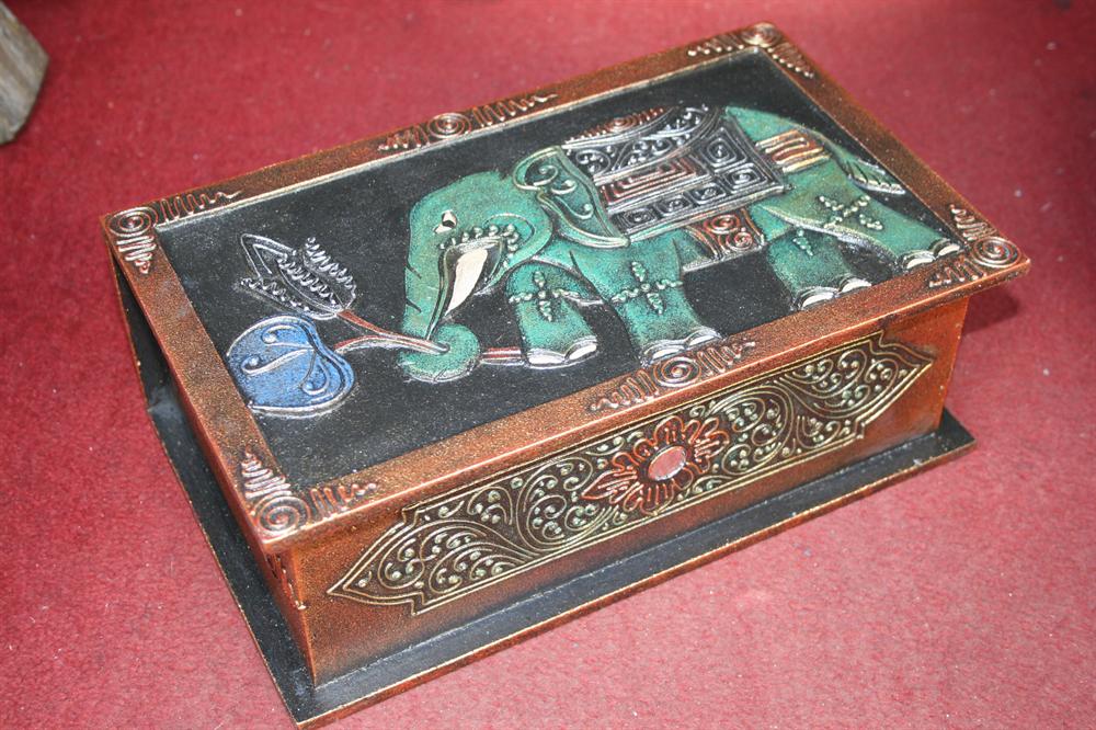 Forside » Lidt af hvert... » Dåser, Kister & Skrin Skrin Elefant grøn/guld 30x18x11cm Varenr: INDW018 Pris ved 1 Stk299,00 DKK Antal Køb Beskrivelse Spørg til varen form