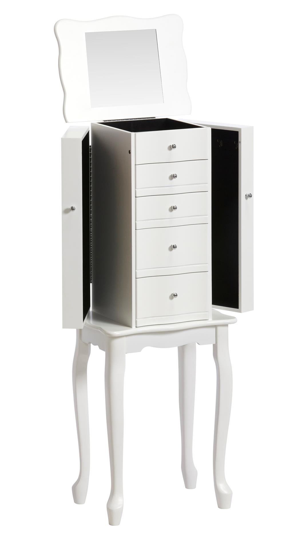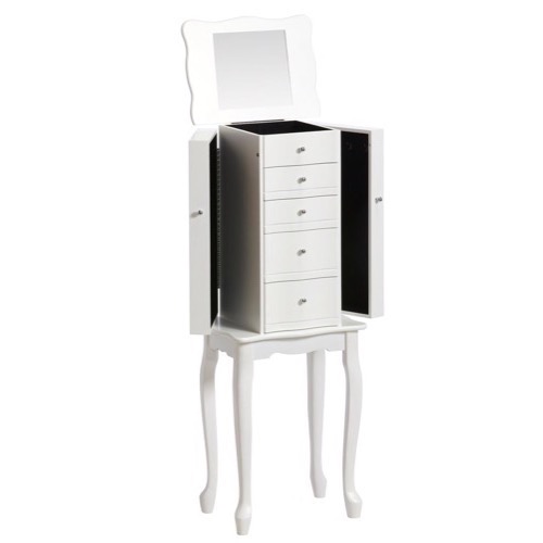 Forside » Møbler » Hvide møbler » Smykkeskabe & Skrin Smykkeskab 5 skuffer 3 låger 36x96x26cm Varenr: 0490501 1.799,00 DKK Pris ved 1 Stk1.399,00 DKK Antal Køb Beskrivelse Spørg til varen form