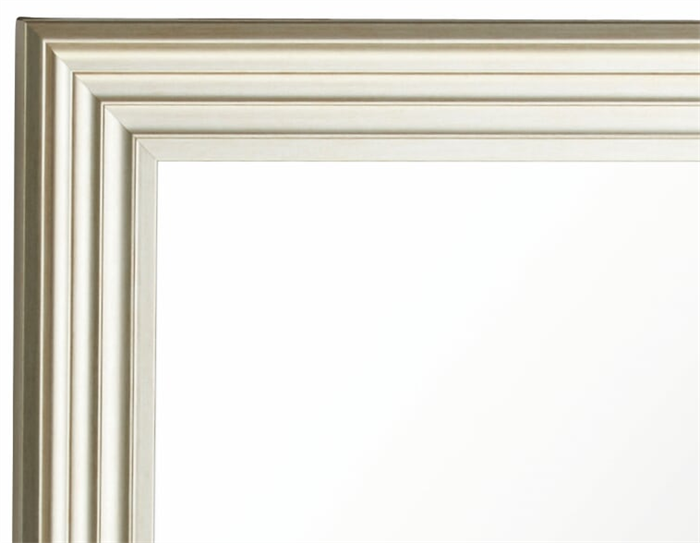 Flot og meget klassisk i en elegant varm sølv nuance. Rammen har 4 niveauer ind mod glasset. Et af de nye sølvspejle som har et meget tydeligt og rent udtryk grænsende til minimalisme