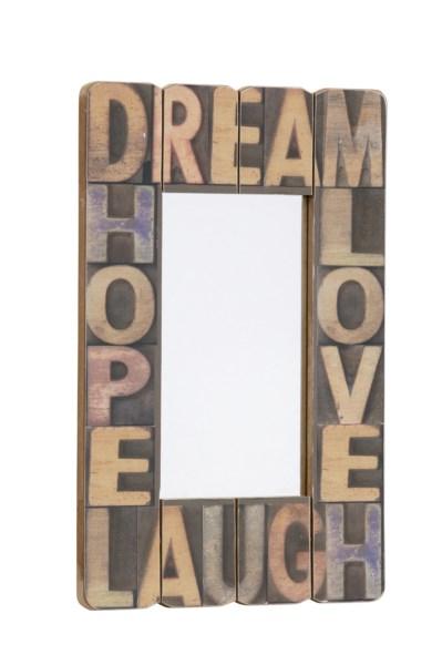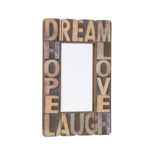 Forside » Spejle » Spejle med Tekst Spejl DREAM HOPE LOVE 40x60cm Varenr: 1510301 Pris ved 1 Stk269,00 DKK Antal Køb Beskrivelse Spørg til varen Spejl i 2cm kraftig MDF ramme med teksten DREAM HOPE LOVE LAUGH Mål: 40x60cm Se flere Træ skilte her Stort udvalg i Guldspejle - Sølvspejle - Hvide spejle og Sorte spejle. Mere end 300 Tiffany lamper, 200 Hvide møbler og over 100 Marokkopuder form