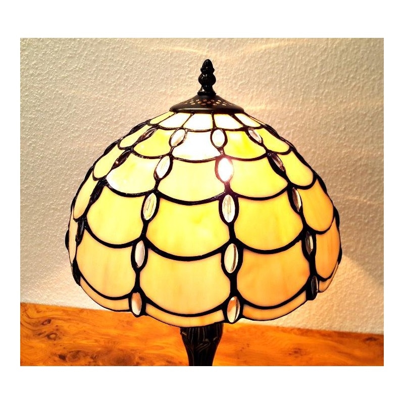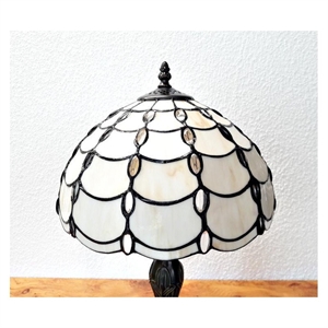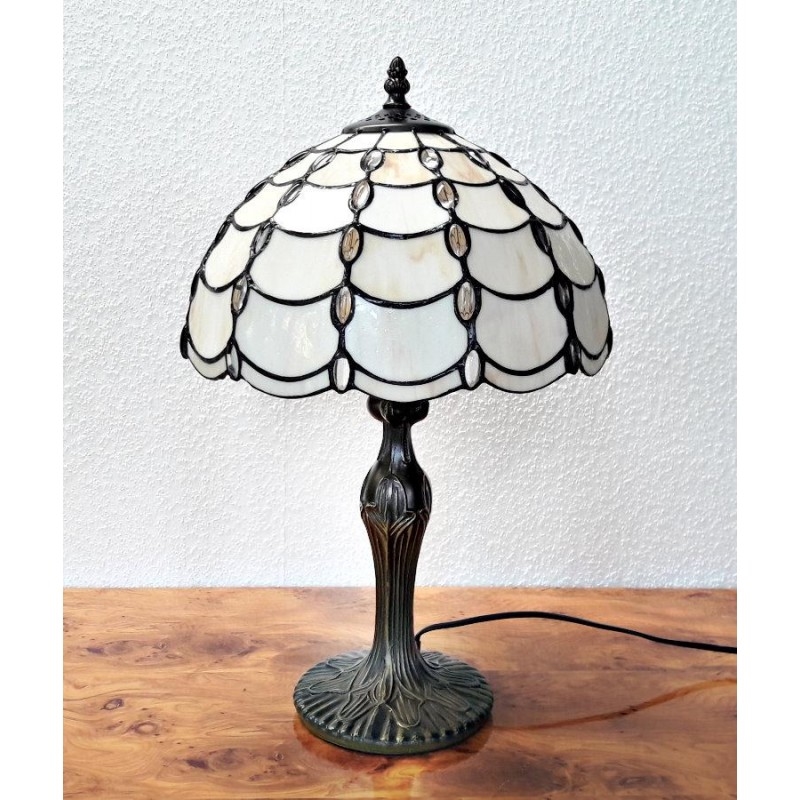 Elegant og enkel Tiffany bordlampe med store gylden hvide felter opdelt af aflange klare perler. En af de klassiske Tiffany lamper