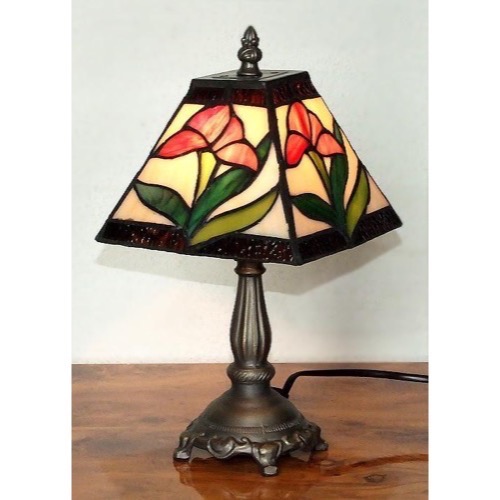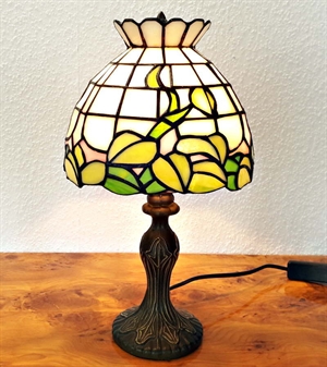 Tiffany lampens højde: 28cm - Skærmens diameter: 15x15cm