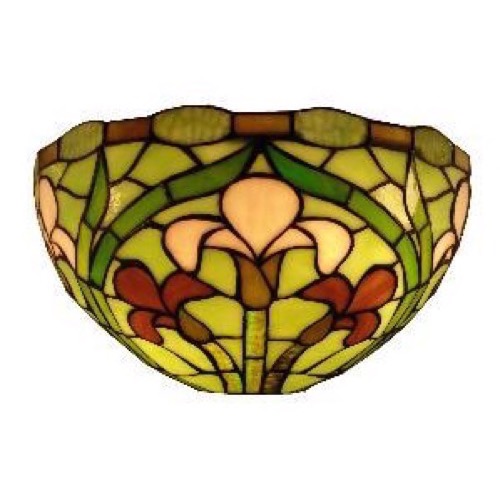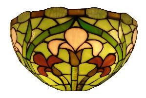 Tiffany væglampe med sjældent set grøn bundfarve og med blomster mønster i grønne og brune nuancer - en Tiffany lampe fra den gamle skole