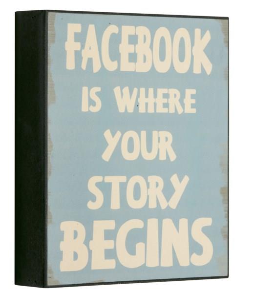 Forside » Skilte » Træ skilte Træ skilt Facebook Is Where Your...21x25x5cm Varenr: 1702601 Pris ved 1 Stk109,00 DKK Antal Køb Beskrivelse Spørg til varen Antik look træ skilt i slidt lyseblå kulør med teksten: "Facebook Is Where Your Story Begins" Mål: 21x25x5cm Se flere Træ skilte her form
