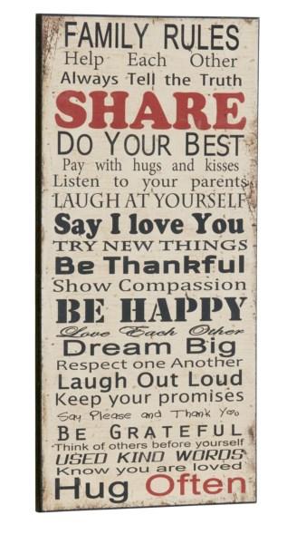Forside » Skilte » Træ skilte Træ skilt Family Rules 30x60cm Varenr: 1502501 Pris ved 1 Stk169,00 DKK Antal Køb Beskrivelse Spørg til varen Klassisk Family Rules træ skilt med hele 23 linier med ligeså klassiske og eviggyldige tekster og udført med forskellige skrift typer i bedste retro stil Mål: 30x60cm Se flere Træ skilte her form Kunder købte også 119,00 DKK Træ skilt Please Wash Your Hands 30x40cm 179,00 DKK Træ skilt Bathroom Rules 40x60cm 89,00 DKK Træ skilt How Long A Minute Is...25x16x5cm