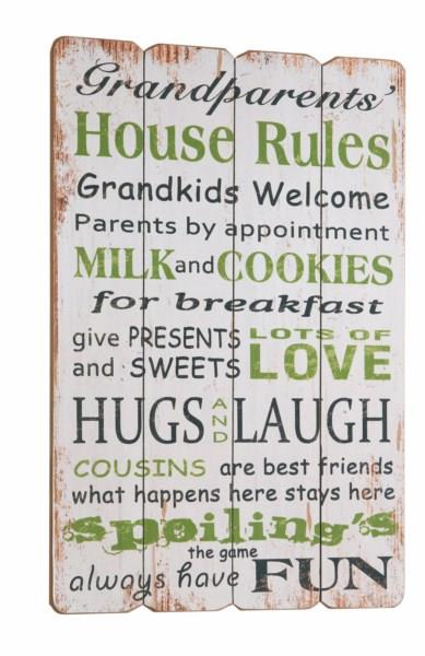 Forside » Skilte » Træ skilte Træ skilt Grandparents House Rules 40x60cm Varenr: 1507501 Pris ved 1 Stk179,00 DKK Antal Køb Beskrivelse Spørg til varen Retro træ skilt med overskriften: "Grandparents House Rules" og derefter følger 8 gode råd Mål: 40x60cm form