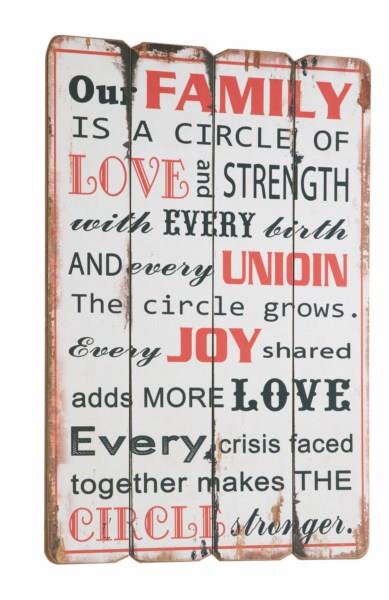 Forside » Skilte » Træ skilte Træ skilt Our Family Is A Circle Of Love 40x60cm Varenr: 1507901 199,00 DKK Pris ved 1 Stk179,00 DKK Antal Køb Beskrivelse Spørg til varen Træ skilt med teksten: Our Family Is A Circle Of Love...... Mål: 40x60cm form