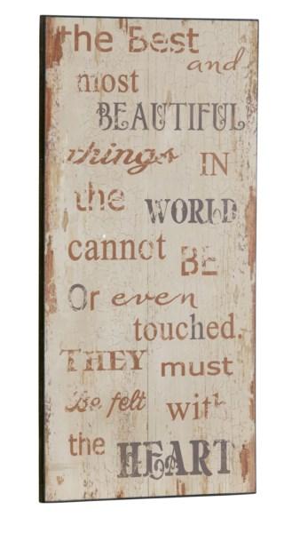 Forside » Skilte » Træ skilte Træ skilt The Best And Most Beautiful... 30x60cm Varenr: 1502401 Pris ved 1 Stk169,00 DKK Antal Køb Beskrivelse Spørg til varen Retro træ skilt med teksten: "The Best And Most Beautiful Things In The World Cannot Be Or Even Touched - They Must Be Felt With The Heart". Cool tekst med forskellige bogstaver på gammeldags støvet brun/lilla baggrund Mål: 30x60cm Se flere Træ skilte her form