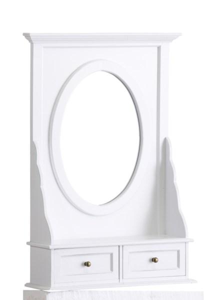 Forside » Møbler » Hvide møbler » Reoler & Vægskabe Vægspejl Ovalt 2 skuffer 42x61x13cm Varenr: 0116001 549,00 DKK Pris ved 1 Stk459,00 DKK Antal Køb Beskrivelse Spørg til varen Vægspejl i retro stil og udført i antik patineret hvidmalet MDF med ovalt spejl og 2 mindre skuffer forneden med slidte messing knopper Mål: 42x61x13cm form